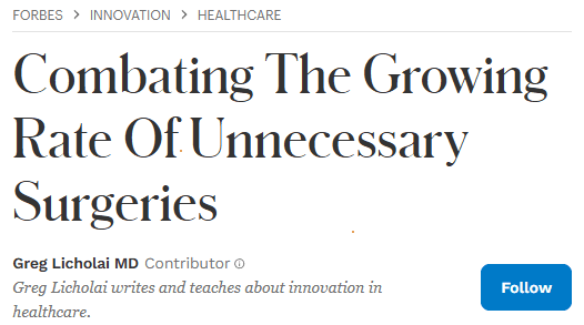 There are three things to think about when choosing a surgeon: their intellectual, technical and ethical traits. The intellectual part can sometimes be guessed by where a surgeon went to school or where they were trained. Unfortunately, this does NOT mean much in terms of whether this is the right surgeon to choose. A surgeon’s technical skill (how good they are with their hands in surgery) is an important factor, but it is very hard for a patient to discern this, and it is also not the most important factor. At Spinely, we believe the most important factor to consider is the ethical characteristics of your surgeon – do they have the patient’s best interest at heart? Unfortunately, the answer is often “no”. At Spinely, we have developed a unique algorithm (based on a number of data points) that can help patients answer this important question.
